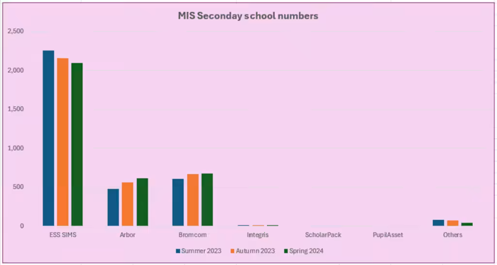 So, the overall picture after the latest census figures remains that ESS SIMS are losing market share whilst Arbor and Bromcom are continuing to grow.